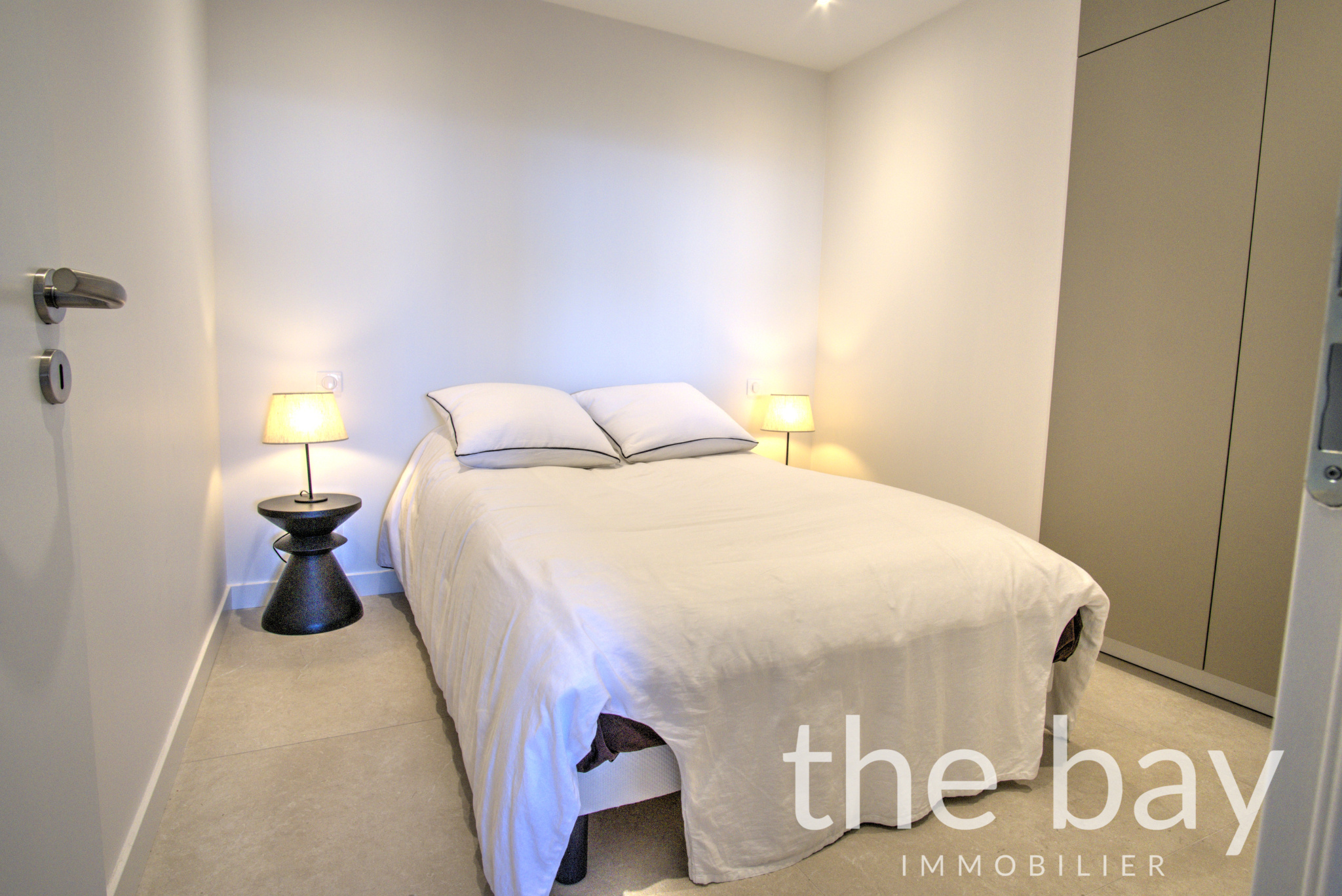 Chambre confortable avec rangements, salle d'eau élégante, réalisée avec des matériauxde qualité.