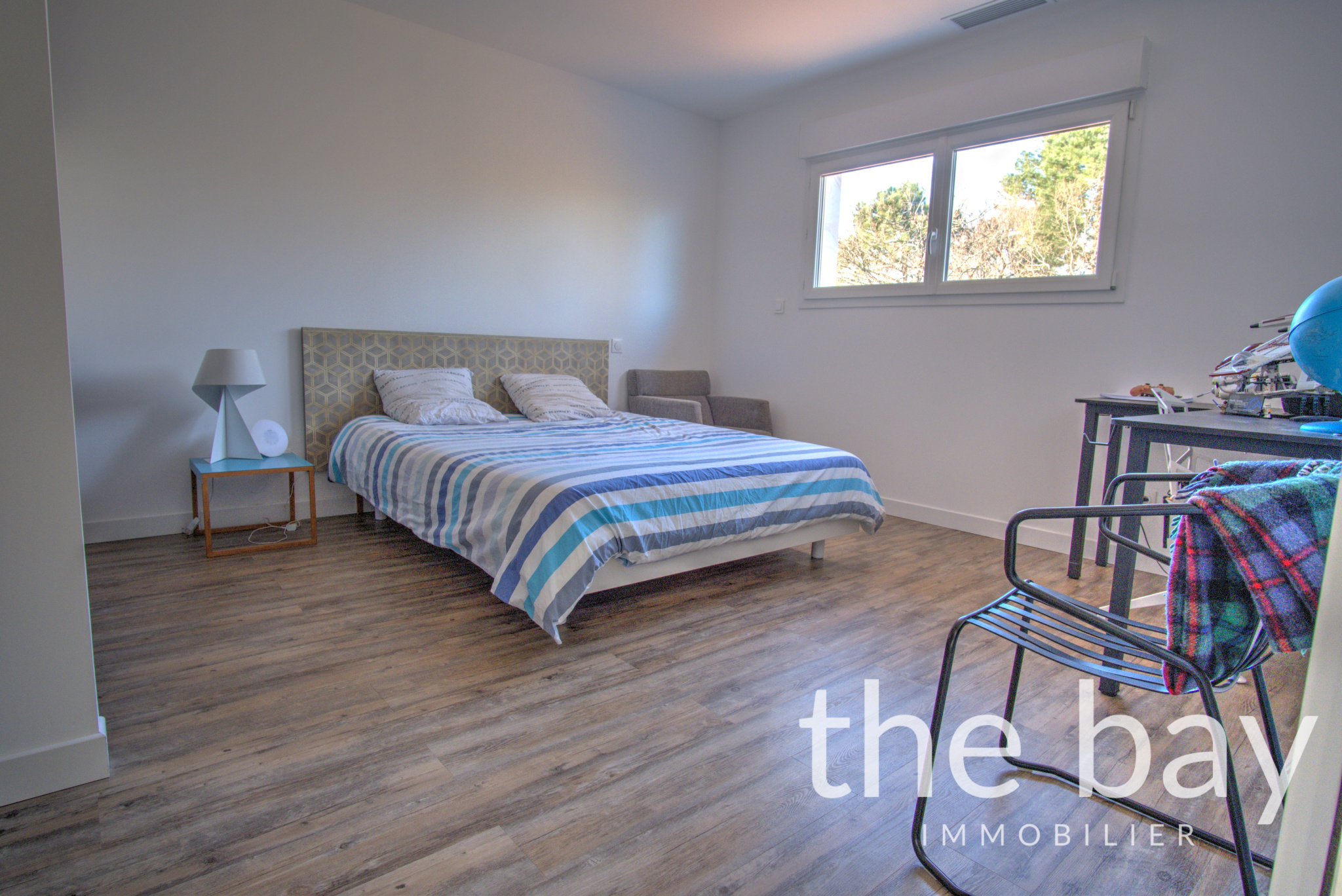 L'étage, créé à partir d'une surélévation récente, se compose de deux grandes chambres de plus de 15 m2, d'une salle d'eau ainsi que d'un WC. Cet étage bénéficie d'une climatisation réversible gainable.
