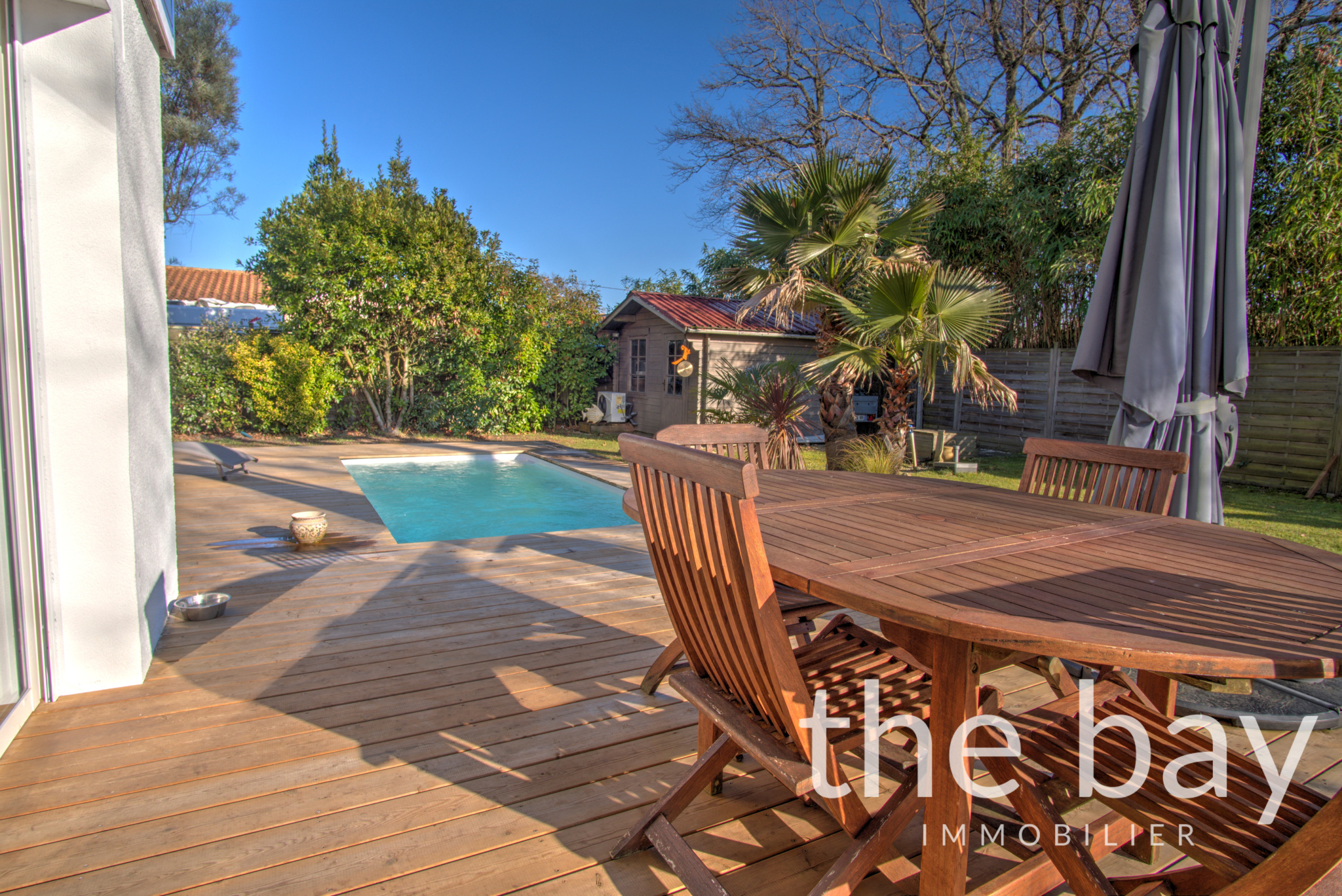 À l'extérieur, vous profiterez d'une très belle terrasse entourant une piscine chauffée, d'un jardin entièrement arboré et d'un abri.