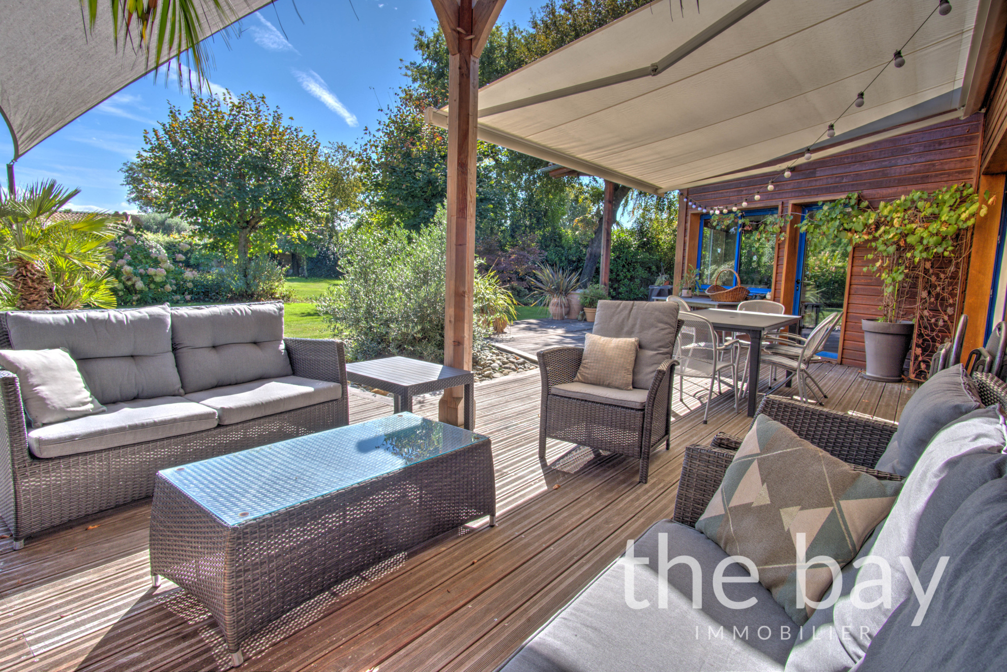 Édifiée sur un terrain exceptionnel de 2 800 m2, arboré et paysagé, elle offre plus de 240 m2 habitables, baignés de lumière et ouverts sur la verdure environnante, dans une atmosphère calme et sans aucun vis-à-vis.