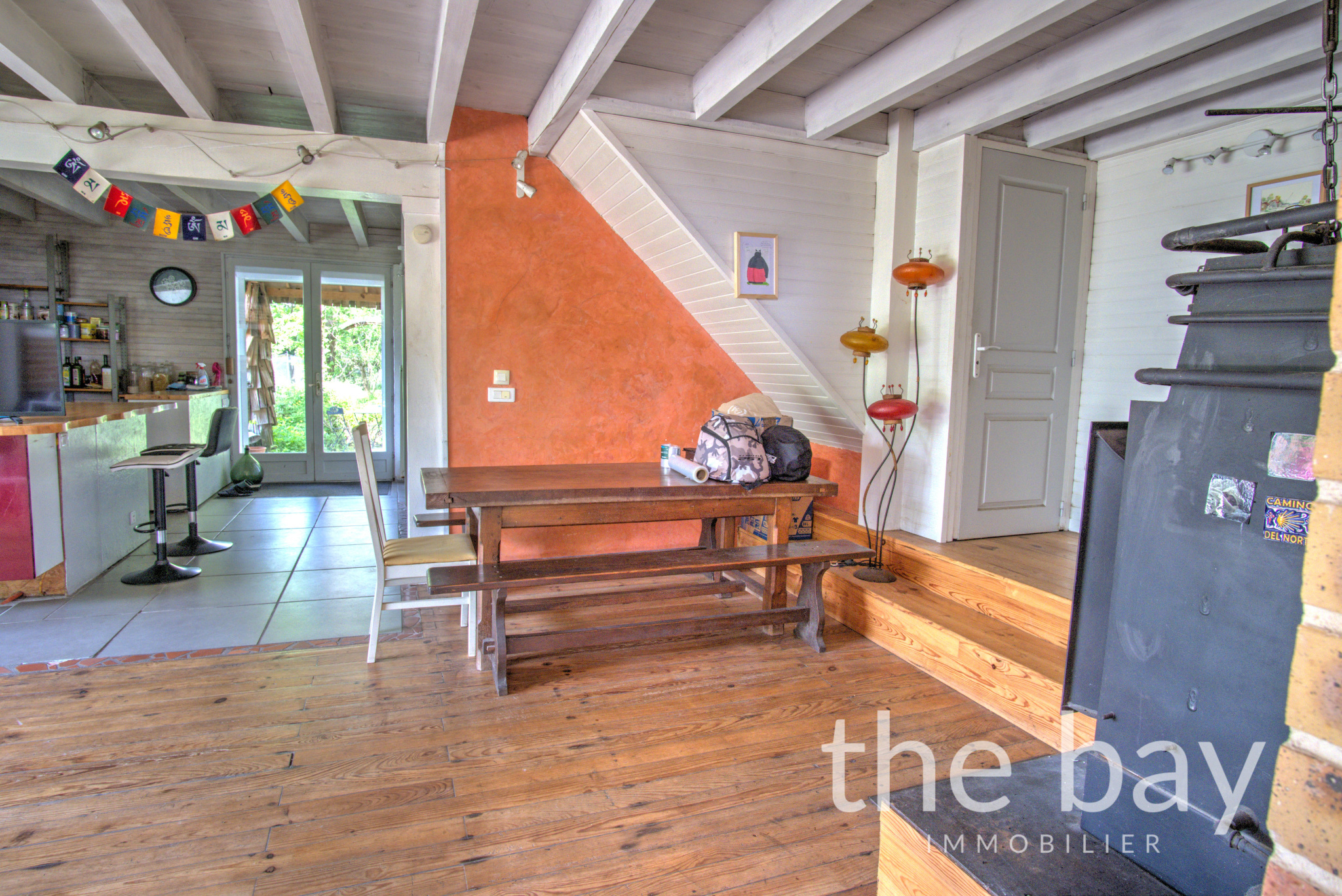 Implantée sur un vaste terrain arboré de 1500 m2, cette propriété bénéficie d'un environnement paisible et verdoyant, avec un accès direct aux balades en bord de Bassin. Son architecture pleine de cachet séduira les amateurs de lieux à fort potentiel.