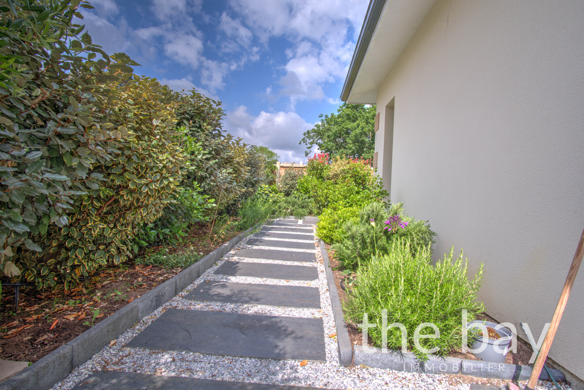 Nichée dans une impasse confidentielle, cette élégante villa contemporaine construite en 2021 incarne une parfaite alliance entre prestations haut de gamme et emplacement privilégié, à deux pas du centre de Gujan-Mestras.