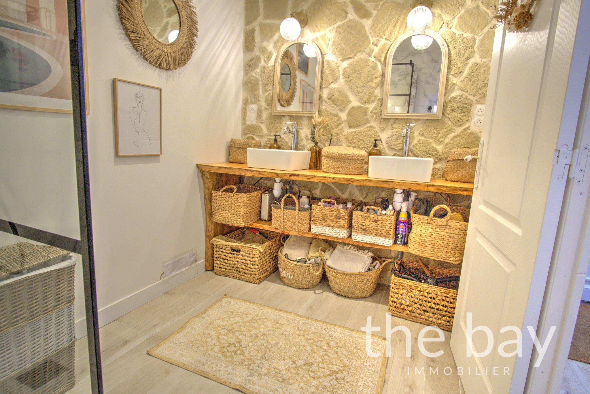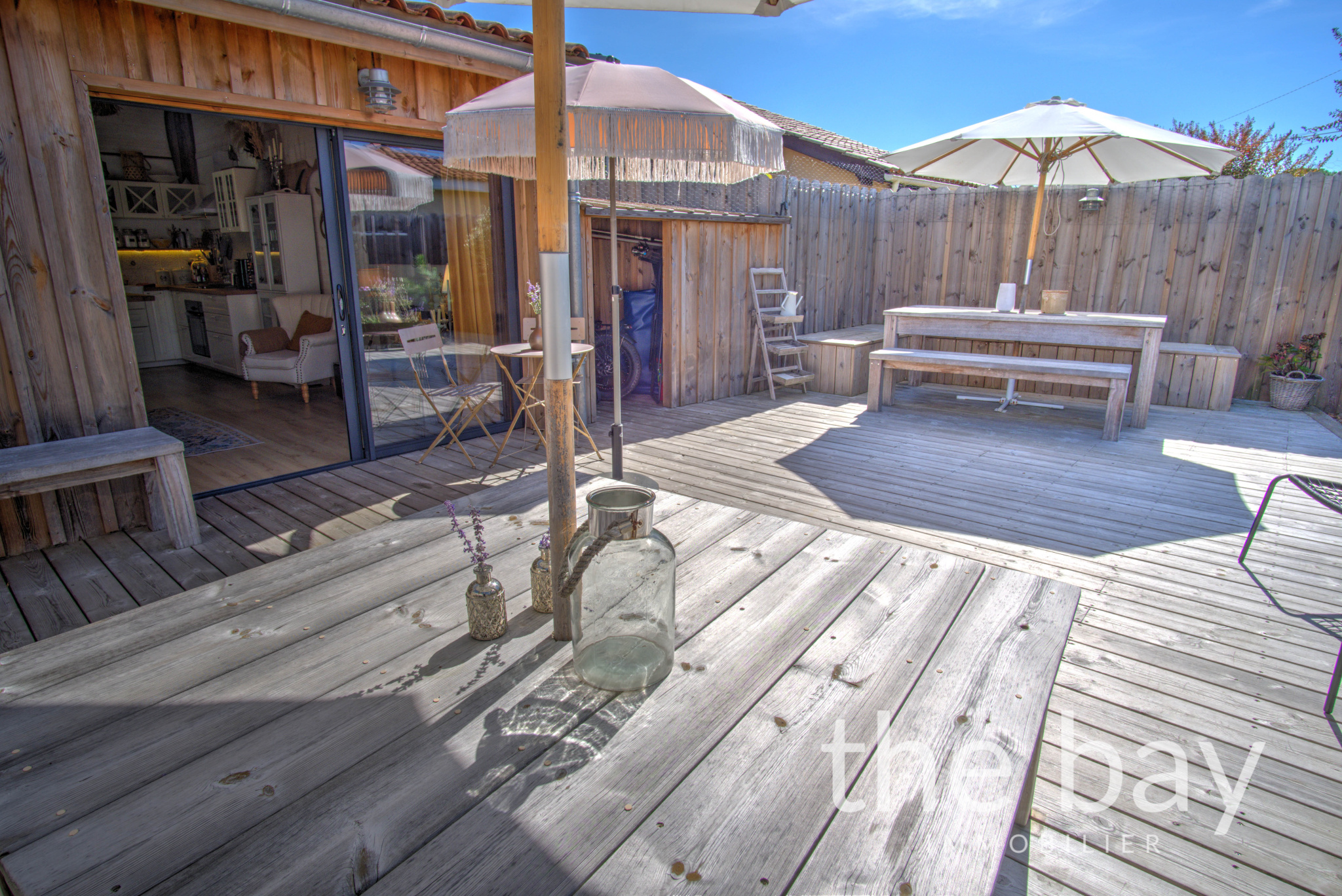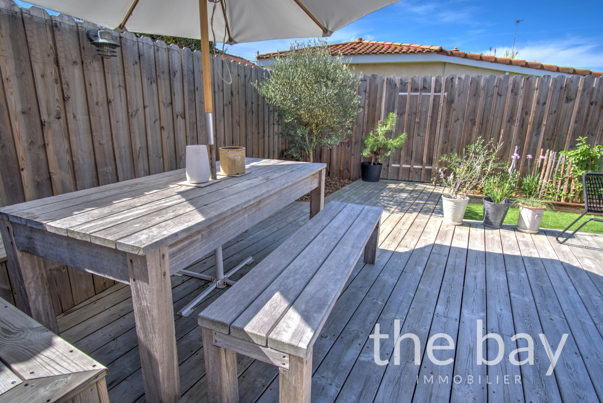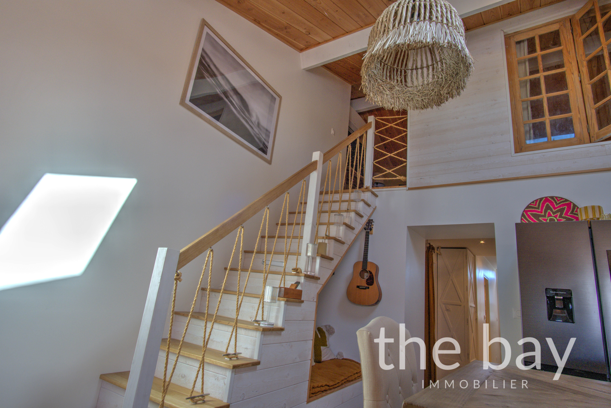 Au rez-de-chaussée : une entrée, une magnifique pièce de vie au plafond cathédrale avec cuisine ouverte, un bureau, une chambre, une salle d'eau, un WC et un cellier.À l'étage : une vaste chambre parentale de plus de 22 m2, ouverte sur le séjour, offrant un espace intime et lumineux.À l'extérieur : une superbe terrasse ensoleillée de plus de 60 m2, à l'abri des regards et parfaitement aménagée, ainsi qu'un abri vélo.