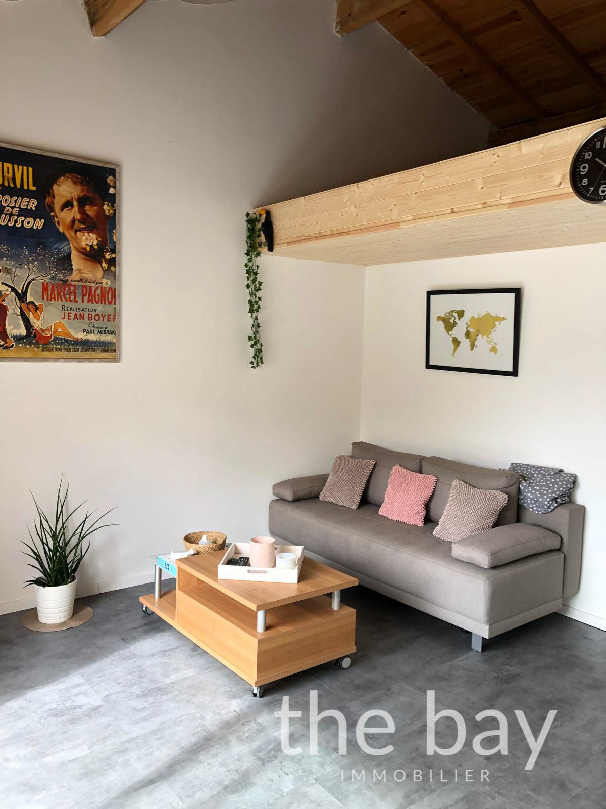 Attenant, un appartement T2 bis offre un bel espace de vie avec séjour et cuisine ouverte, une chambre, une salle d'eau avec WC ainsi qu'une mezzanine.