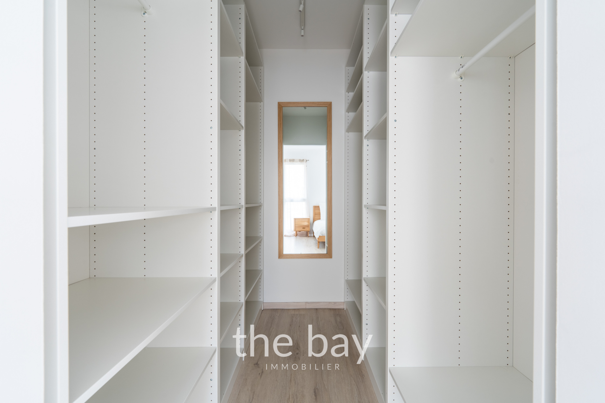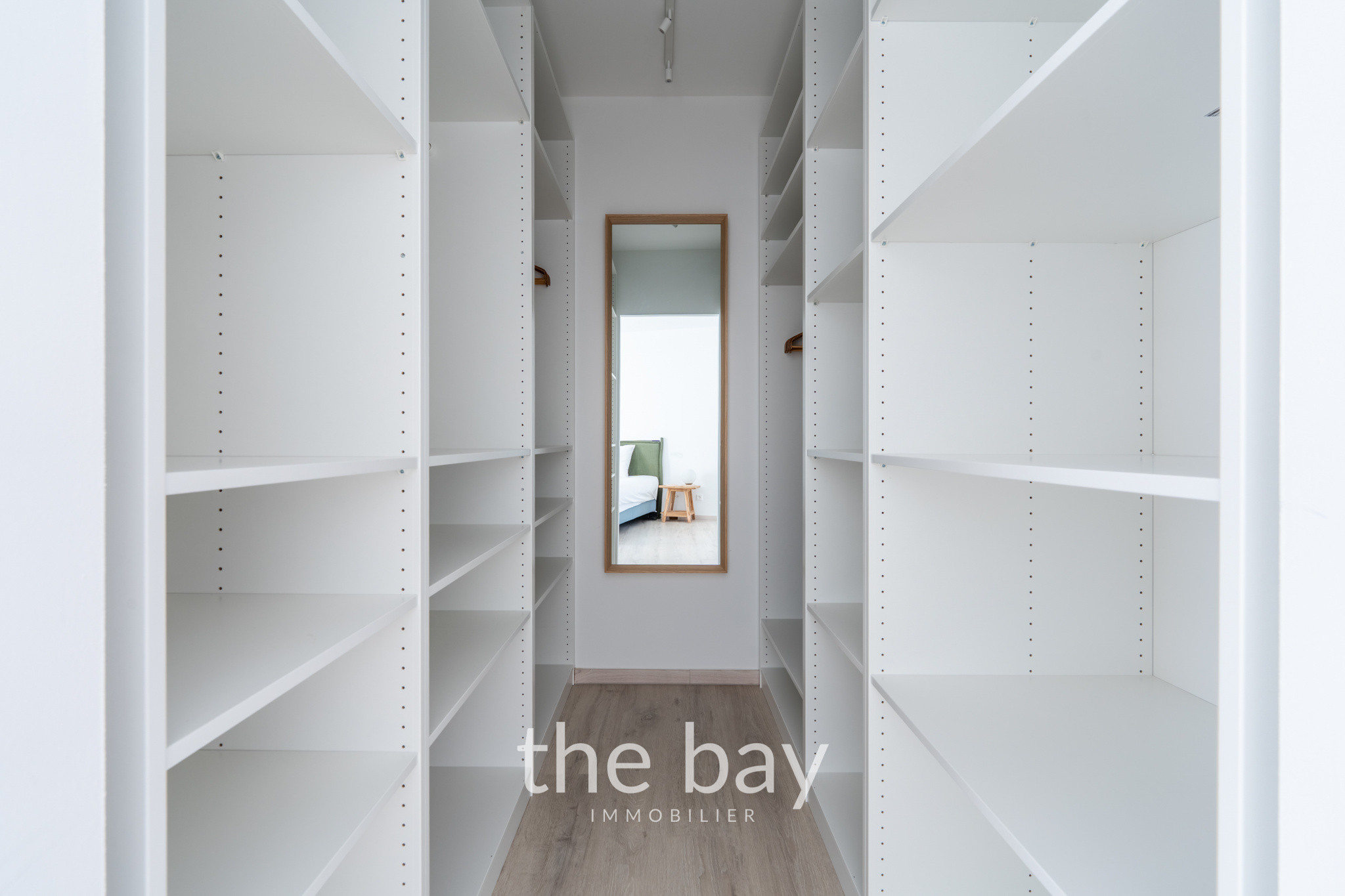L'espace nuit, pensé dans un esprit d'intimité et de confort, se répartit sur deux niveaux. Au premier étage, deux suites raffinées disposent chacune de leur propre dressing et salle de bain privative avec douche à l'italienne et WC. Un dégagement spacieux et lumineux offre également un espace idéal pour un bureau, une bibliothèque ou un coin détente.